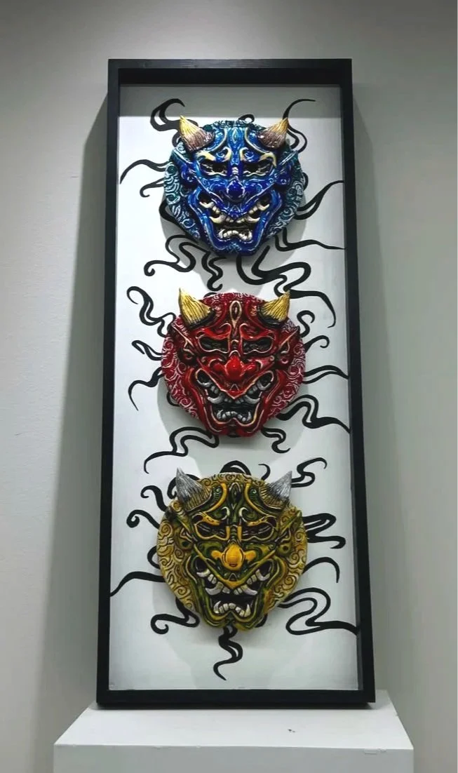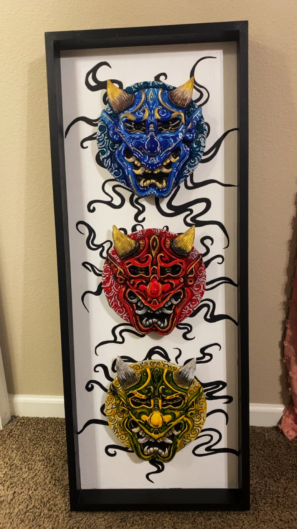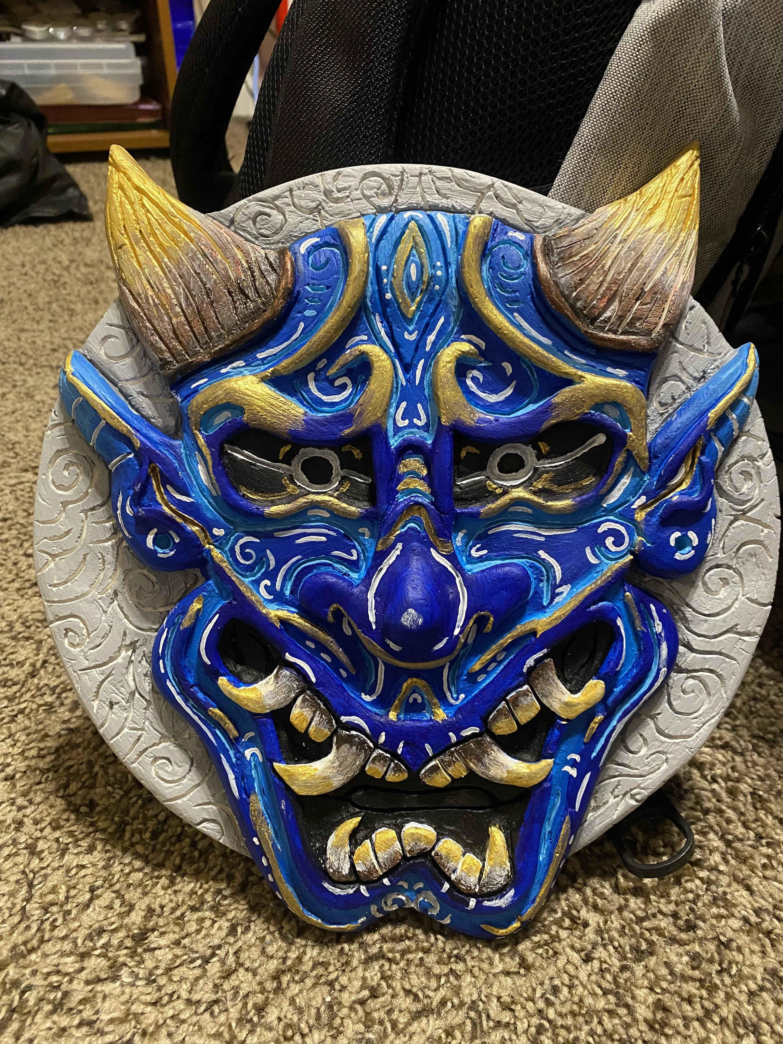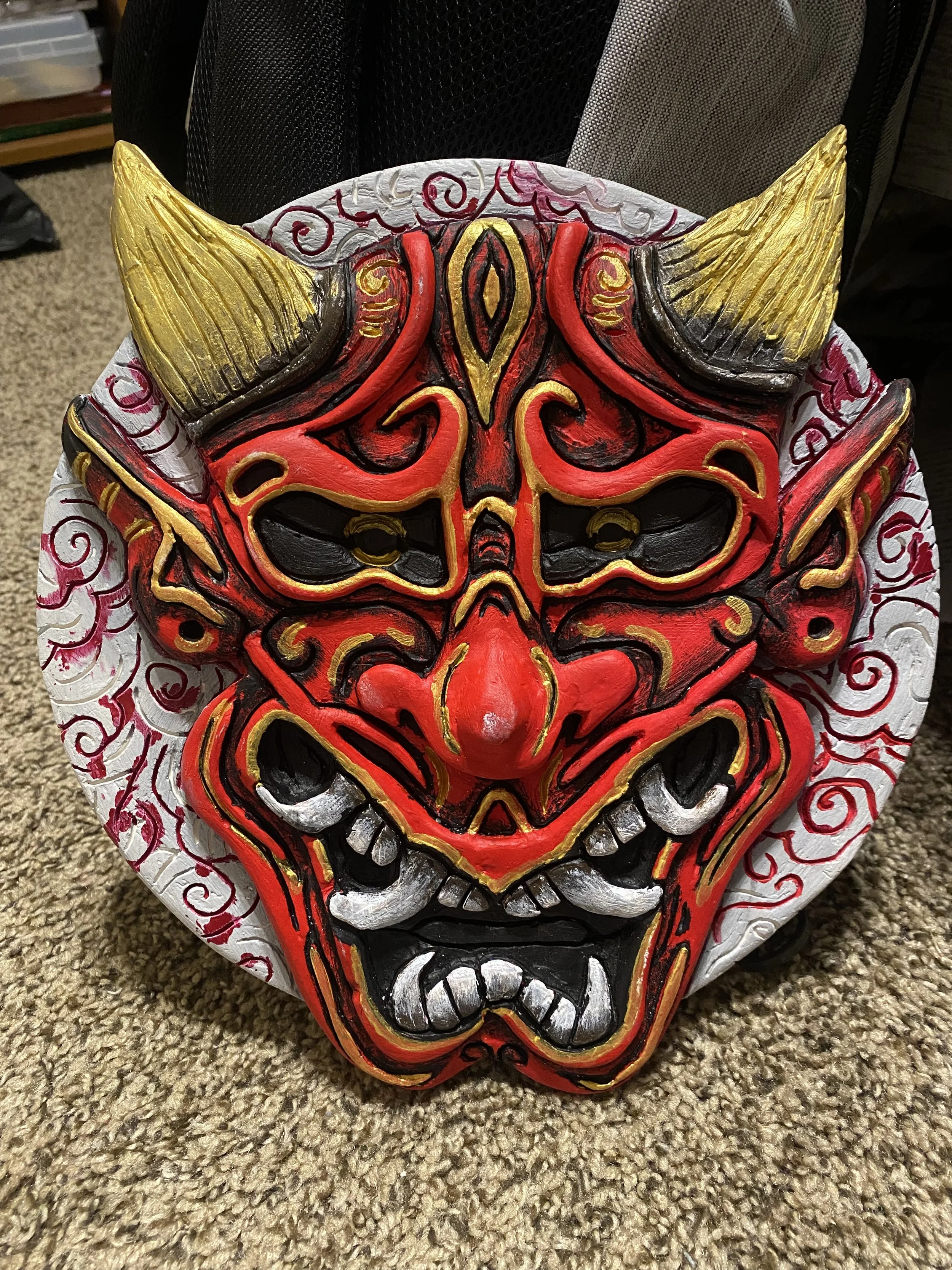 Creating this sculpture was an exciting and rewarding experience, especially as my first attempt at working in this medium. I’m very pleased with how it turned out! I chose to explore Oni masks because I’ve always been drawn to their expressive, exaggerated features and the balance between intimidation and symbolism they carry within Japanese folklore. Below, you can see parts of my process as the piece developed. With guidance from my professor, Dr. Massey, and a few in-class demonstrations, I was able to successfully bring my vision to life!